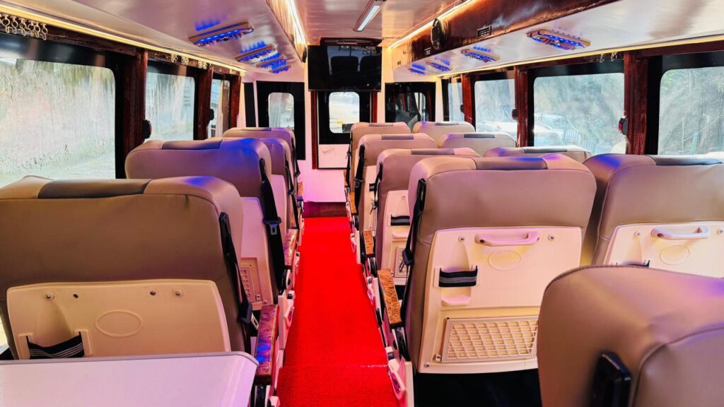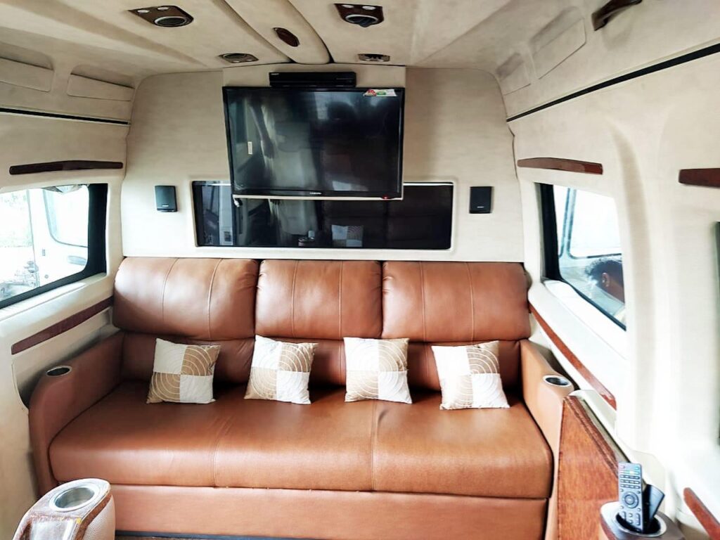 Our luxury van rental service in India comes with top-class facilities such as pushback seats, LED TV, music system, air-conditioning, Wi-Fi, charging points, comfortable bedding, mini-fridge, and a clean washroom. These amenities make your travel smooth and enjoyable, especially for long-distance journeys.