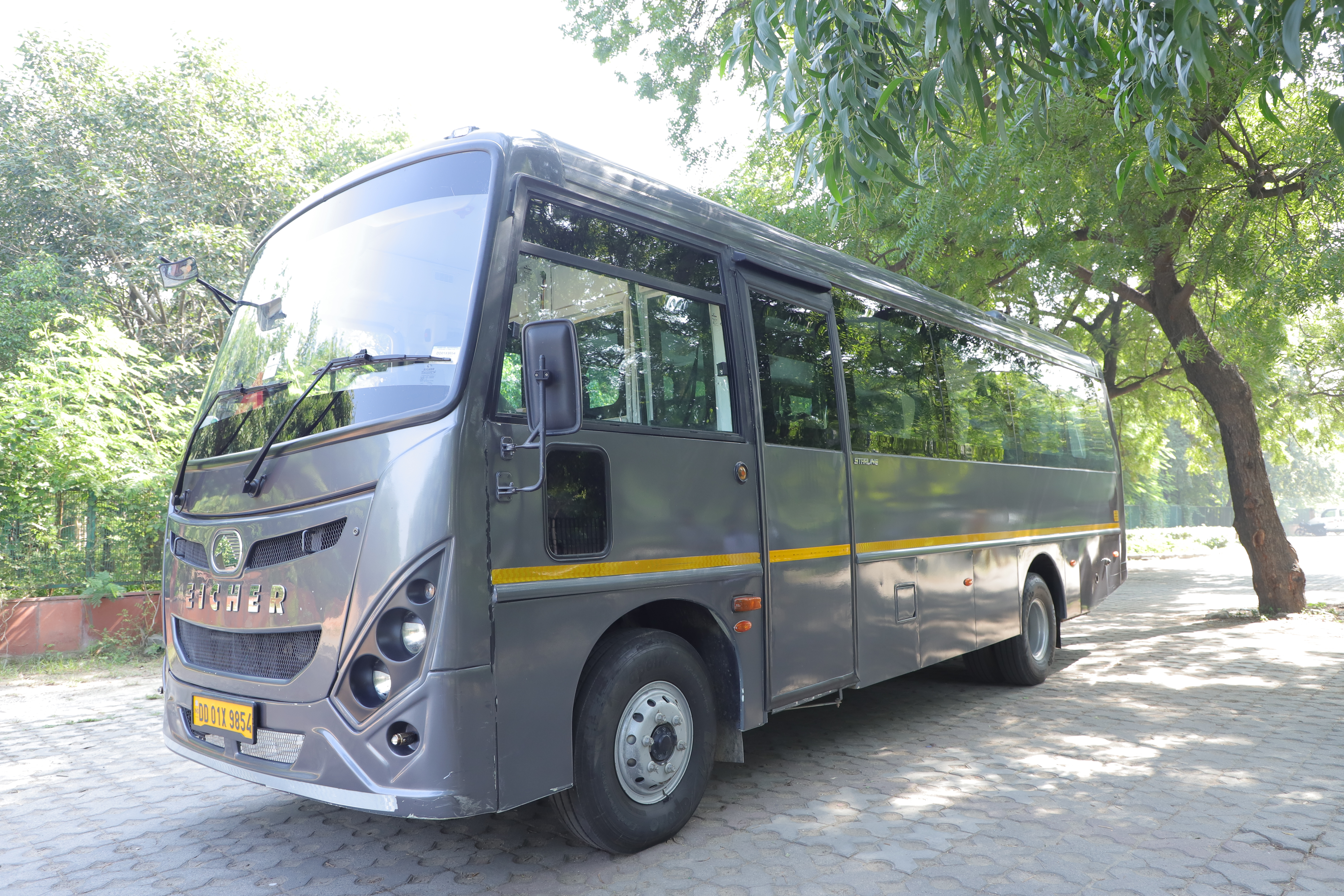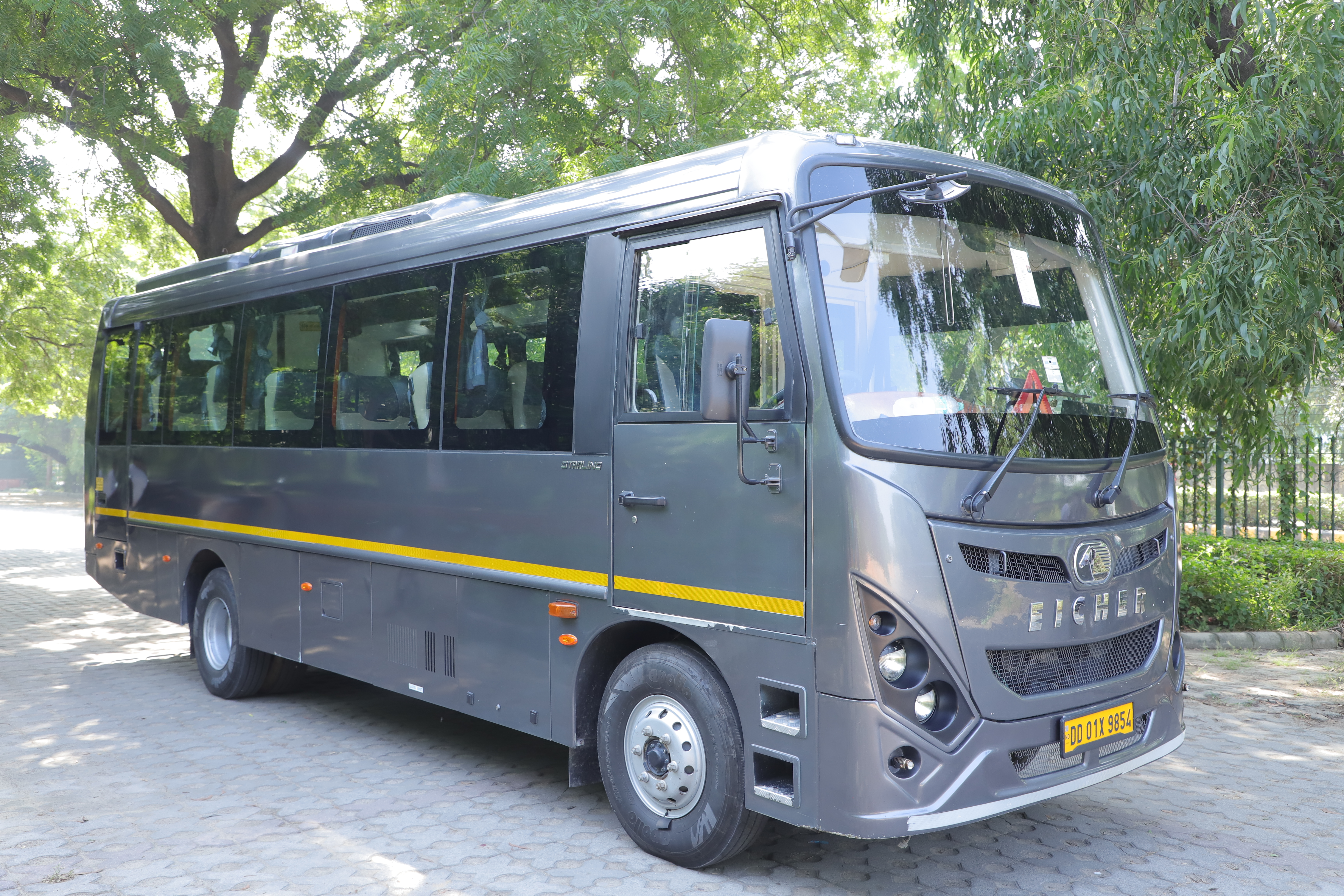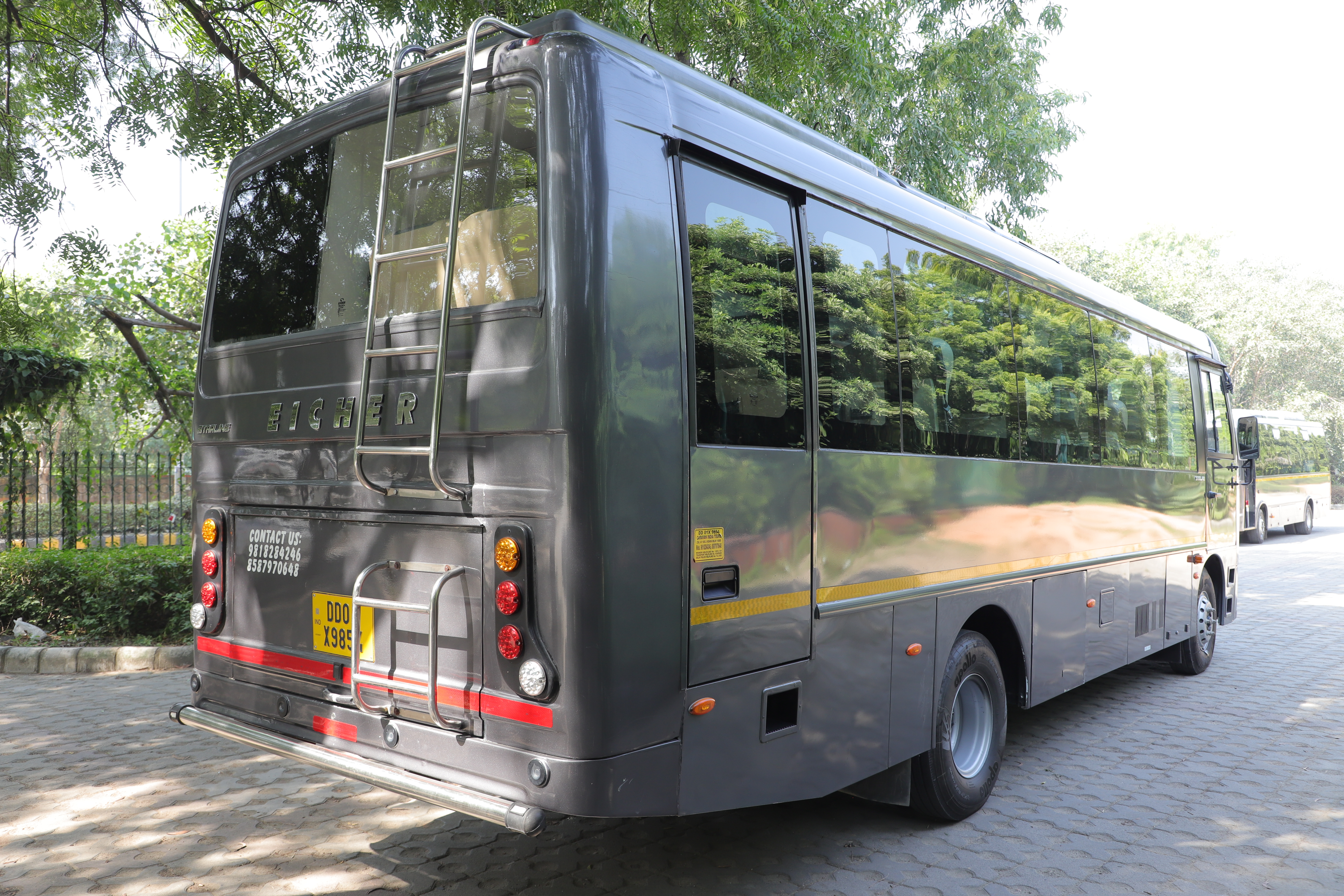 From a safety perspective, the Eicher 16-Seater Luxury Coach is a highly dependable option. It is equipped with GPS tracking, ABS braking system, individual seat belts, fire extinguisher, emergency kit and robust build quality. The coach also offers ample luggage space, making group travel well-organized and completely tension-free.