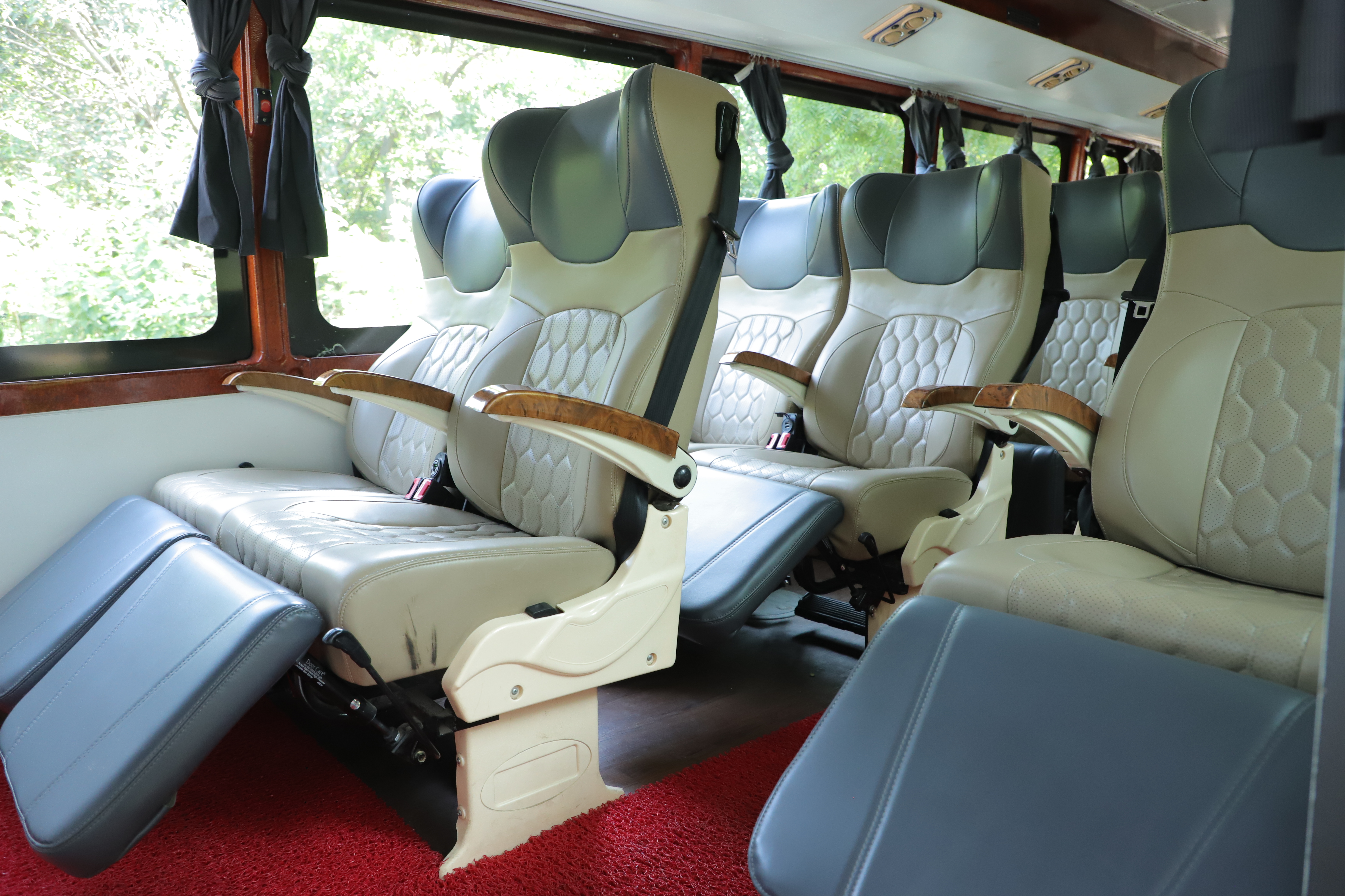 The interior of this 16-seater luxury coach is spacious, hygienic and thoughtfully designed to deliver a relaxing road journey. It features cushioned pushback recliner seats, wide legroom, high-roof cabin and powerful full air-conditioning, ensuring maximum comfort throughout the trip. Large panoramic windows enhance the travel experience by offering beautiful scenic views, especially on hill station routes, highways and nature drives. Powered by a BS6 engine, advanced suspension system and strong performance, this luxury coach ensures a vibration-free and fatigue-free ride, even during long-distance travel.