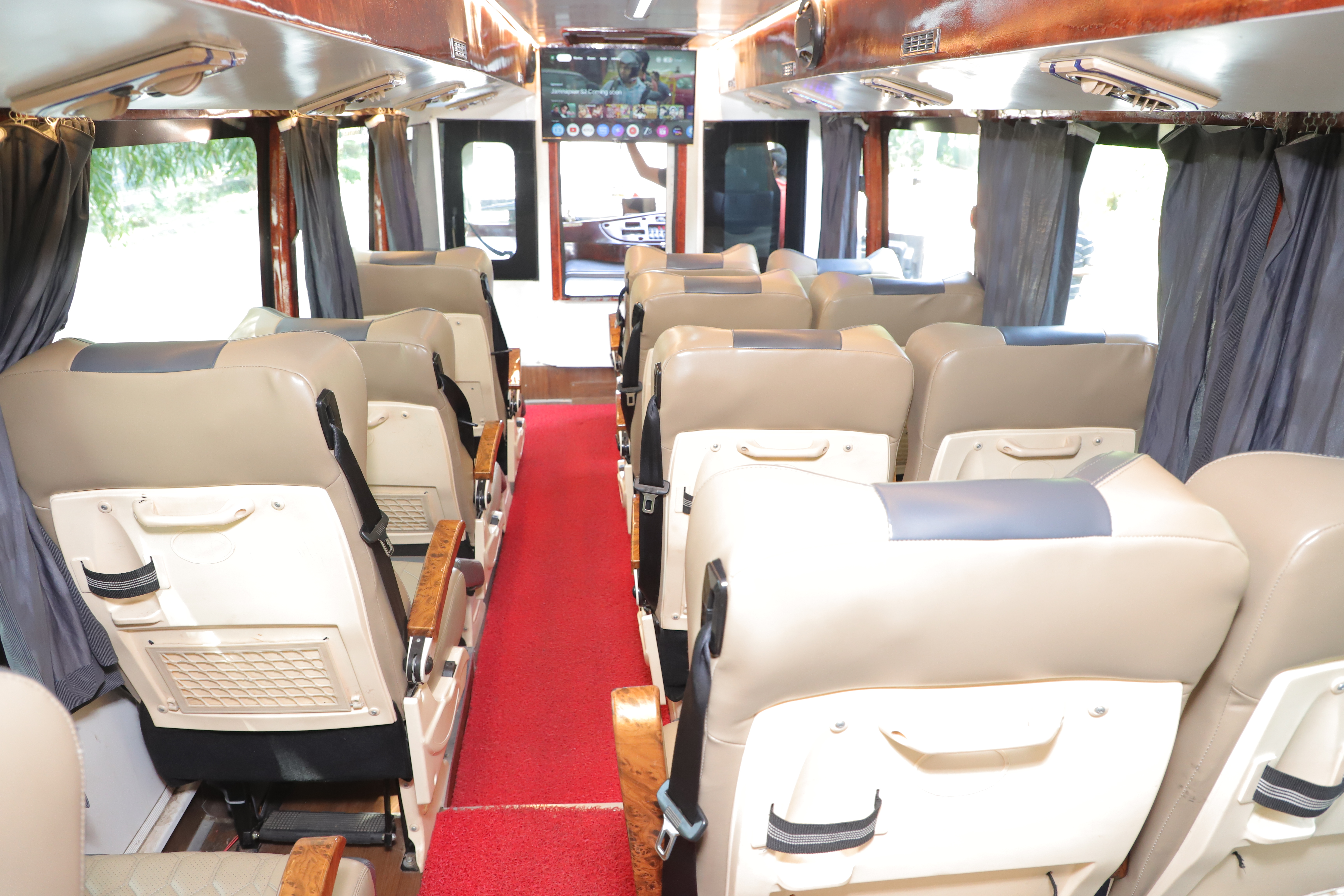 This luxury coach is ideal for travelers looking for a perfect balance between premium comfort and affordable pricing. Its combination of modern features and budget-friendly packages makes it one of the best choices for family vacations, religious yatras, destination weddings, group tours and long-distance luxury travel.